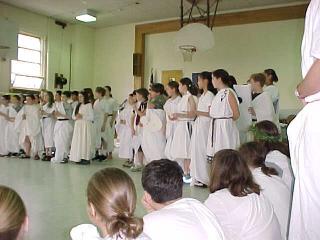 A choral speech is peom with a rhythm. Our choral speech is about Athens and Sparta, the two main cities. Athens loves the arts (writing, sculpture, dance, architecture, etc.), but Sparta just likes to fight and trains all their males as soldiers. In this choral speech, they argue over whose style of life is better.