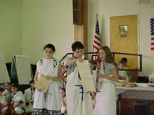 The Greek Olympics are an event put on by the Blue House in Weber Middle School. Weber Middle School is, as of the year 2000, the middle school for Port Washington, New York. The Olympics are part of our study of Ancient Greece. We had plays, choral speeches, math/science competitions, our own olympic band, and thanks to our parents, great Greek food.